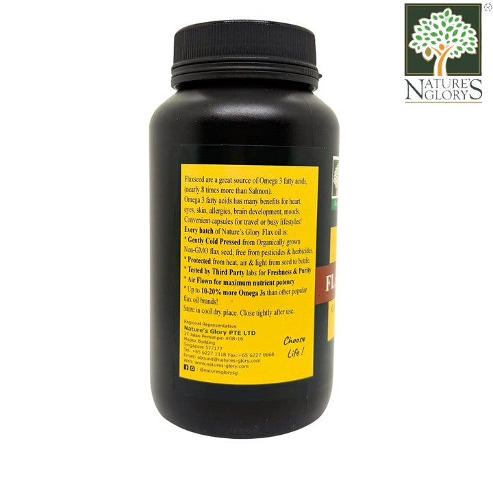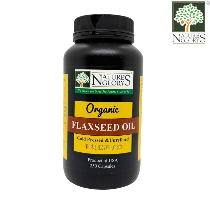 Organic Flaxseed Oil Cold Pressed & Unrefined 250caps Nature's Glory ( BB: Sept 2028)